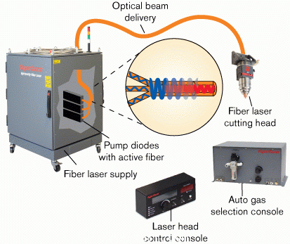 另外,與CO2激光系統(tǒng)相比,光纖激光切割工藝大大簡化了切割床的設(shè)計要求和集成操作。部分得益于光 纖激光的高能效,運行成本和維護要求也比CO2激光系統(tǒng)低得多,兩者均接近于零,因而大大降低了總投資成本。