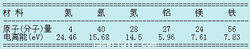 表1  常用氣體和金屬的原子(分子)量和電離能