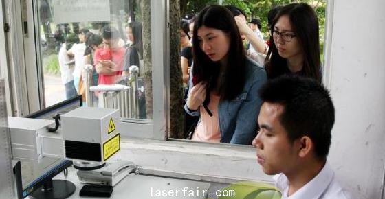 學(xué)生們排隊將自己的貴重物品拿來做專屬標(biāo)識
