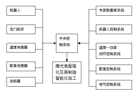 通過加裝溫度傳感裝置,激光測距儀,再輔以激光先進(jìn)性制造工藝專家系統(tǒng),可以實(shí)現(xiàn)激光加工過程的距離、溫度、軌跡、處理效果的智能化控制,控制系統(tǒng)的示意圖如圖2。