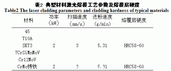 2)典型材料的激光熔覆
