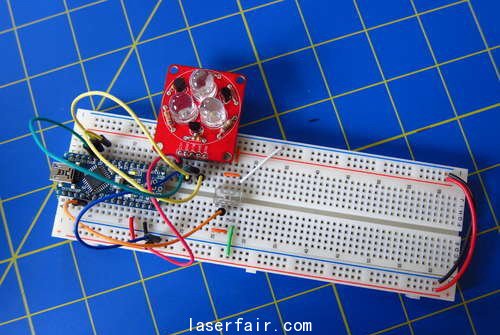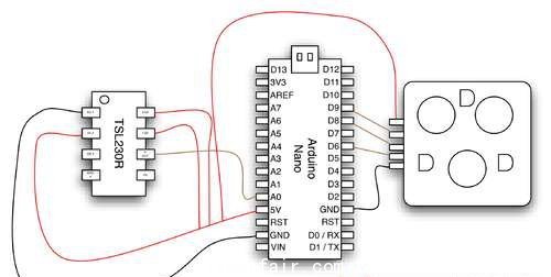 用TSL230R、ArduinoMini和Sparkfun三色LED制造這個(gè)目標(biāo)。