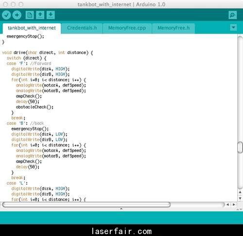 要在這個(gè)頁(yè)面加載坦克的代碼。這需要從http://arduinology.blogspot.com獲取令人驚嘆的WiFlyl庫(kù)。這一切都附加在代碼上面了。