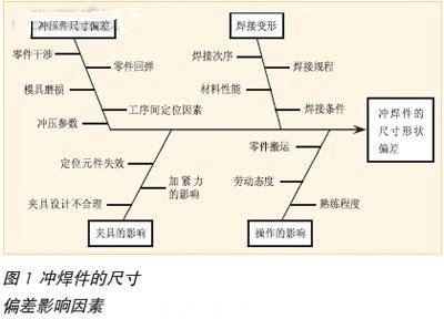 汽車(chē)車(chē)身是汽車(chē)的三大部分之一,是整個(gè)汽車(chē)零部件的載體。車(chē)身焊裝質(zhì)量的優(yōu)劣對(duì)整車(chē)質(zhì)量起著決定性作用,焊裝尺寸偏差直接影響到最終汽車(chē)產(chǎn)品的質(zhì)量,如密封、噪聲、壽命、動(dòng)力性和外觀等。車(chē)身尺寸偏差主要來(lái)源如下(如圖1):沖壓件本身的偏差、工裝夾具影響、焊裝變形、操作影響等。其中沖壓件偏差和焊接工裝夾具偏差是影響車(chē)身尺寸偏差的最主要的因素。