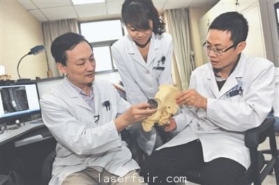 在北京大學(xué)第三醫(yī)院骨科主任劉忠軍(左一)的辦公桌上,放著一盒形狀各異、布滿孔隙的東西。劉忠軍說:“這就是用3D打印技術(shù)制造出來的人體骨骼。”