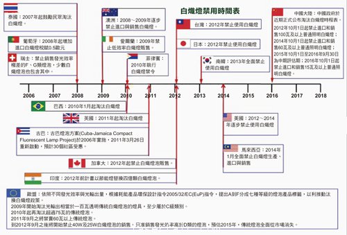 圖1 各國禁用白熾燈時(shí)程表 資料來源:LEDinside(03/2013)