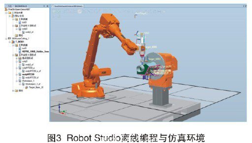 Robot Studio是ABB開發(fā)的離線編程與仿真軟件,可在電腦上完成幾乎所有的機(jī)器人編程與仿真。如圖3所示,通過Robot Studio能夠?qū)崿F(xiàn)十分逼真的模擬,并且所用的均為實(shí)際使用的機(jī)器人程序和配置文件。配合ABB Absolute Accuracy校正系統(tǒng),可以使模擬結(jié)果達(dá)到很高的精度。Robot Studio還可方便地導(dǎo)入IGES、STEP、CATIA等主流CAD格式數(shù)據(jù),然后依據(jù)這些精確的數(shù)據(jù)編制機(jī)器人程序。使用軟件中的AutoPath功能,僅在數(shù)分鐘之內(nèi)便可自動(dòng)生成跟蹤加工曲線所需要的機(jī)器人位置(路徑),很好地解決了激光切割中復(fù)雜切割曲線無(wú)法通過示教產(chǎn)生的問題,大大節(jié)約了編程時(shí)間。