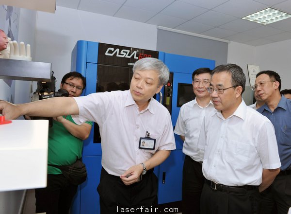 胡春華詳細詢問了廣州電子公司在3D打印技術研發(fā)的自主創(chuàng)新情況。廣州電子公司董事長李耀棠匯報了自主研發(fā)的激光固化3D打印機、熔絲沉積3D打印機和桌面型個人3D打印機的技術研發(fā)及應用情況,介紹了3D打印技術在我省的產(chǎn)業(yè)化應用及未來的發(fā)展趨勢。