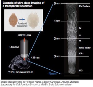 SCALEVIEW透明液,配合WD 4mm, NA1.0或WD8mm, NA0.9物鏡,成像深度可達(dá)數(shù)毫米。專用25X水鏡,專門(mén)校對(duì)600-1100nm紅外波段,配合覆蓋差校準(zhǔn)功能,直達(dá)樣品深處。
