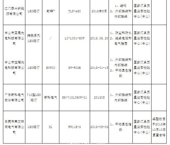 2013年廣東省LED路燈產(chǎn)品質(zhì)量專項監(jiān)督抽查不合格產(chǎn)品及其生產(chǎn)企業(yè)名單
