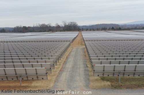 如今,Gigaom針對此事現(xiàn)狀給出了一份詳細報告,其中談到,數(shù)據(jù)中心附近的太陽能農場擁有超過100畝,大約5萬塊太陽能電池。每一個太陽能電池板的背面都有一個控制器連接到電池板轉向裝置上。太陽能電池板采用單軸跟蹤器,雖然不像雙軸的那么精確,但便宜且構造簡單。在白天,計算機自動計算傾斜角度,使太陽能電池板以最佳角度面對太陽(類似向日葵)。