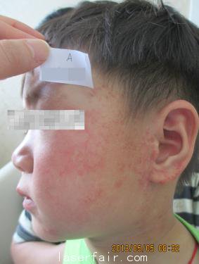 首先采用美國三維皮膚CT檢查系統(tǒng),進行科學分析判斷皮損程度和色素分布與深度,為治療提供可靠科學依據(jù);然后,把我院秘制的色素提取液敷在胎記患處,配合先進的色素提取治療儀,將色素吸附到皮膚表層;最后應用美國光導消融儀,對吸附到皮膚表層的色素顆粒進行完全汽化,達到清除色素的目的,對皮膚完全沒有損害。