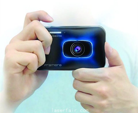這是設(shè)計師帶來的激光領(lǐng)地照相機(jī),相機(jī)的鏡頭旁邊,是一個方框狀的激光投影儀,能在你的前方根據(jù)距離,投射出剛好圍住你所要拍攝范圍的一個亮藍(lán)色方框,醒目地提醒周圍的人,這里正拍照,請繞行。