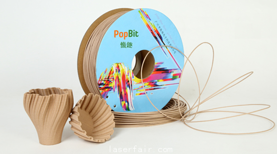 另一種木絲材料——Pop Wood,是中國(guó)制造商傲趣電子科技公司開發(fā)的,這是用原生的青楊木粉末制成的一種新型復(fù)合材料。Pop Wood的加工溫度為170?230℃,這一點(diǎn)類似于LAYWOO-D3和WoodFill,但它會(huì)隨著溫度的不同變成深淺不同的棕色。