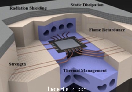 下圖顯示的是一個(gè)三維結(jié)構(gòu)概念模型的橫截面,它是內(nèi)嵌式導(dǎo)線和元件,擁有多材料的基板來提供機(jī)械、熱和電磁功能。