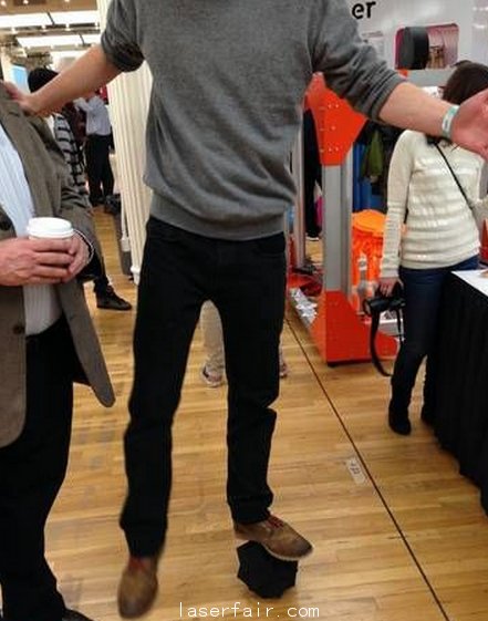 但是PLA的物體更脆弱?在上圖中Oehmigen當(dāng)場站在了一個(gè)30厘米高的打印樣品上進(jìn)行壓力測(cè)試。這個(gè)樣品內(nèi)部比較稀疏,但Oehmigen站上去后什么事也沒有。