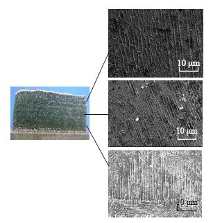 自然關(guān)節(jié)骨軟骨復(fù)合體梯度分層結(jié)構(gòu)及各層之間不同的材料組成是關(guān)節(jié)軟骨發(fā)揮其生理功能的基礎(chǔ)。關(guān)節(jié)表面的軟骨組織和下層的骨組織材料不同,界面的微結(jié)構(gòu)影響軟骨的性能和軟骨對骨的附著性。認識軟骨組織與骨組織的界面結(jié)構(gòu)并制造這些仿生結(jié)構(gòu)是發(fā)展關(guān)節(jié)組織工程的方向。通過對自然骨/軟骨界面分析,設(shè)計并制造了一種新型從材料到結(jié)構(gòu)仿生軟骨/骨梯度組織工程支架,以解決目前骨軟骨組織工程中存在的難題。