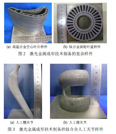 采用DZ125L、FGH96 高溫合金和鈦合金,對空心渦輪葉片和整體渦輪葉盤的激光金屬成形工藝進行了研究。采用粉末負離焦的形貌自穩(wěn)定效應(yīng)、組合式掃描、逐層降功率、中間高兩邊低的掃描速度策略等成形技術(shù),用激光金屬成形技術(shù)制備出了較高表面質(zhì)量的某型雙工質(zhì)復(fù)雜空心葉片樣件和形狀復(fù)雜的鈦合金閉式整體渦輪葉盤樣件(圖2),以及鈦合金人工關(guān)節(jié)樣件(圖3)。