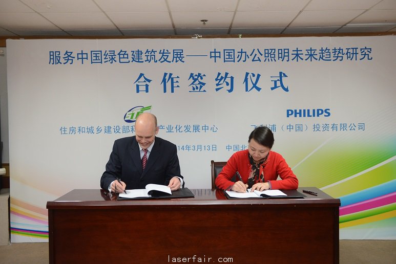 2014年3月13日,住房和城鄉(xiāng)建設(shè)部科技與產(chǎn)業(yè)化發(fā)展中心與飛利浦(中國)投資有限公司就共同申報開展中國辦公照明未來趨勢課題申報研究工作,簽訂框架協(xié)議;此次合作將為推動我國的綠色建筑及節(jié)能事業(yè)發(fā)展,促進綠色照明科技的進步,發(fā)揮積極作用。