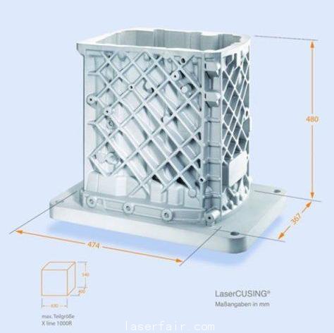 除了激光外,這臺(tái)新機(jī)器還號(hào)稱(chēng)是金屬燒結(jié)領(lǐng)域打印空間最大的設(shè)備,為474 x 367 x 480 毫米(18.6 x 14.4 x 18.9 英寸)。如果打印空間還不足夠,1000R的高度也可以擴(kuò)展。開(kāi)發(fā)部負(fù)責(zé)人Florian Bechmann 博士說(shuō):“必要時(shí),使用混合式制作方式,幾何形狀可以突破 基本 打印尺寸,高度可達(dá)540 毫米 [21.25英寸]。 ”