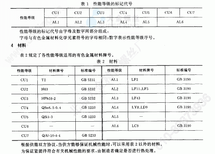 有色金屬螺栓、螺釘、螺柱和螺母性能等級的標記代號如表 1所示。