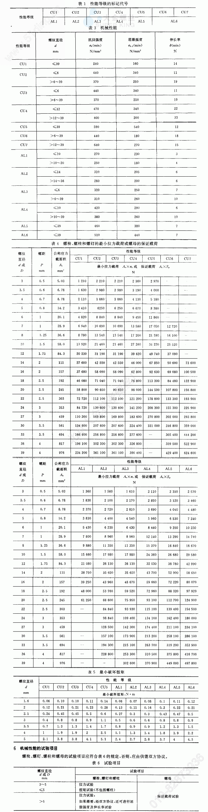 在常溫下按第7章規(guī)定的方法進行試驗時,螺栓、螺釘、螺柱和螺母的機械性能和工作性能應符合表3~表5的規(guī)定。