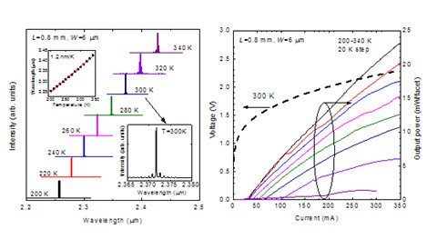 中國科學(xué)院上海微系統(tǒng)研究所信息功能材料國家重點(diǎn)實(shí)驗(yàn)室化合物半導(dǎo)體方向的研究人員通過在InP襯底上采用氣態(tài)源分子束外延方法生長三角形量子阱作為有源區(qū)的激光器結(jié)構(gòu),克服InAs和InP襯底的大晶格失配,能獲得比傳統(tǒng)方勢阱激光器更優(yōu)的性能。通過這種方法制備出的2-2.4微米波段范圍一系列量子阱激光器均已實(shí)現(xiàn)室溫連續(xù)工作,制備的2.4微米窄條激光器(6 µm×0.8 mm)在300 K時(shí)閾值電流僅62 mA,單面輸出功率超過11 mW。此2.4微米InP基無銻量子阱激光器是目前國際上已有報(bào)道中室溫激射波長最長的,達(dá)到了實(shí)用要求。該波段器件的系列研究結(jié)果已于2014年初發(fā)表在IEEE Photonics Technology Letters和Applied Physics Express上。