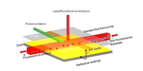 而吳翔及其合作者開發(fā)的新型光微流激光ELISA技術(shù)的創(chuàng)新之處在于,以熒光產(chǎn)物為激光增益介質(zhì),利用高品質(zhì)因子的光學(xué)微腔產(chǎn)生激光輸出;在固定的泵浦功率下,產(chǎn)生激光的閾值時(shí)間和被測目標(biāo)分子的濃度呈反比,不同的濃度對應(yīng)不同的閾值時(shí)間,由此,將閾值時(shí)間作為該技術(shù)中的探測信號。