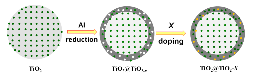最近,中國科學(xué)院上海硅酸鹽研究所與北京大學(xué)化學(xué)學(xué)院開展了合作研究,黃富強(qiáng)、汪宙、楊重寅、林天全等科研人員原創(chuàng)地發(fā)展出多種新型制備方法(氫等離子法、鋁還原法、二步非金屬摻雜法),大幅提高了太陽光譜中可見光和近紅外光的吸收,效果明顯。這些最新發(fā)現(xiàn)的黑色二氧化鈦納米晶,不同于高溫氫氣還原的黑色氧化鈦,為一種核殼結(jié)構(gòu),核區(qū)仍為結(jié)晶的二氧化鈦,外殼為無定型的結(jié)構(gòu),其中無序的外殼是使白色二氧化鈦?zhàn)兂珊谏墓δ軈^(qū)域,無序的外殼包含氧空位或非金屬X摻雜(X=H、N、S、I)。該結(jié)構(gòu)可導(dǎo)致對太陽光的吸收高達(dá)85%,遠(yuǎn)優(yōu)于文獻(xiàn)報(bào)道(30%)。