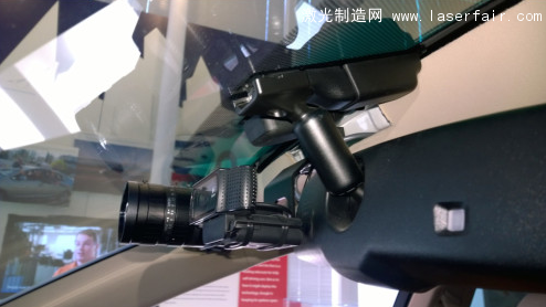 在車(chē)內(nèi)還可以看到兩個(gè)攝像頭,一個(gè)向內(nèi)一個(gè)向前。其中設(shè)在后視鏡上、向前的攝像頭帶有一個(gè)自動(dòng)對(duì)焦的專(zhuān)業(yè)鏡頭。這是方向傳感器,用于判斷車(chē)輛前行方向,具體作用類(lèi)似于人體的內(nèi)耳(負(fù)責(zé)傳感頭部速度)。
