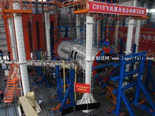 2014年3月29日上午,C919大型民用客機(jī)翼身組合體靜強(qiáng)度研究試驗(yàn)首項(xiàng)試驗(yàn)在中航工業(yè)強(qiáng)度所閻良新區(qū)121試驗(yàn)室所順利完成。首項(xiàng)試驗(yàn)為偏航機(jī)動(dòng)100%限制載荷試驗(yàn),試驗(yàn)加載平穩(wěn)協(xié)調(diào)、載荷準(zhǔn)確,約束點(diǎn)的載荷反饋結(jié)果與理論計(jì)算相符。翼身組合體靜強(qiáng)度測試的順利通過,意味著鉑力特公司制造的大型合金激光成形件的各項(xiàng)性能指標(biāo)滿足航空標(biāo)準(zhǔn),得到了專家和客戶的一致認(rèn)可。
