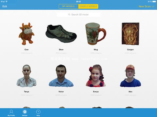 有了Itseez3D與Structure感應(yīng)器,iPad用戶可以建立物體的高清晰度彩色和結(jié)構(gòu)數(shù)據(jù),Itseez3D將這些數(shù)據(jù)傳送到云計(jì)算平臺(tái),且在幾分鐘內(nèi)便能返回完整的3D模型。用戶可通過(guò)電子郵件或sketchfab.com網(wǎng)站上共享.ply格式或.obj格式的3D模型。