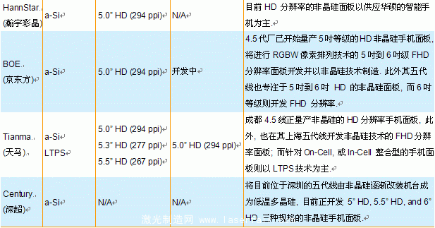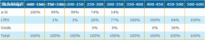 表二、各TFT LCD面板廠商生產(chǎn)a-Si高分辨率智能手機(jī)面板的戰(zhàn)略