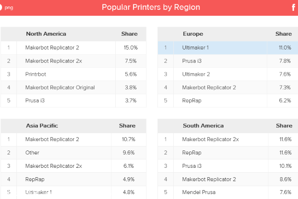 總部位于荷蘭的分布式3D打印網(wǎng)絡(luò)3D Hubs 近日發(fā)布了2014年8月份的全球3D打印趨勢報告。該報告主要通過對3D Hubs平臺上發(fā)生的3D打印服務(wù)交易以及在平臺上注冊的超過6000臺3D打印機(jī)等數(shù)據(jù)的分析,跟蹤誰是當(dāng)下最流行的3D打印機(jī)、3D打印耗材以及相關(guān)廠商。