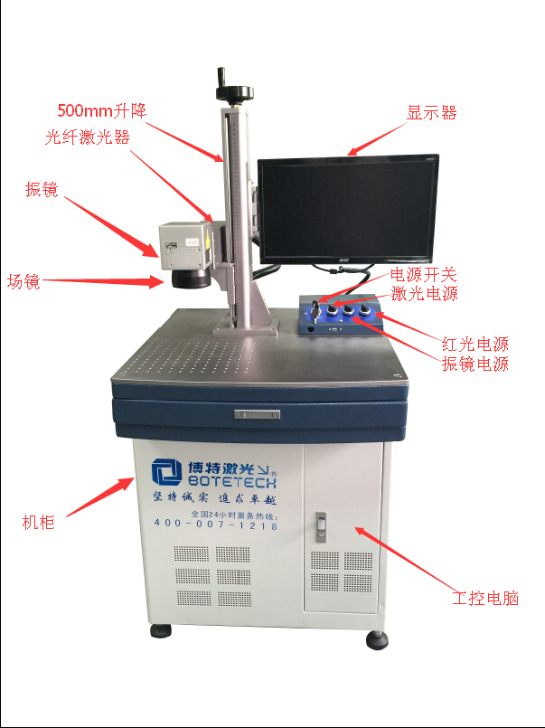 機型特點:YLP光纖激光打標機是我公司運用了世界上最先進的激光技術(shù)研制而成新一代激光打標機系統(tǒng)。采用光纖激光器輸出激光,再經(jīng)高速掃描振鏡系統(tǒng)實現(xiàn)打標功能。光纖激光打標機電光轉(zhuǎn)換效率高,達20%以上(YAG為3%左右),極大的節(jié)省了電能。采用風(fēng)冷方式冷卻,散熱性能好,不需空調(diào)和水循環(huán)系統(tǒng),光纖可盤繞,整機體積小巧,輸出光束質(zhì)量好,諧振腔無光學(xué)鏡片,具有免調(diào)節(jié),免維護,可靠性高等性能。廣泛應(yīng)用于塑膠按鍵、塑膠按鈕,充電器,手機透光按鍵等打標工作。特別適用于深度、光滑度、精細度要求較高的領(lǐng)域,如鐘表、模具行業(yè),位圖打標等。