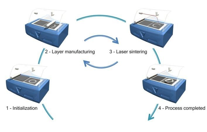 一般而言,激光快速成型需要用高功率的激光照射試件表面,融化金屬粉末,形成液態(tài)的熔池,然后移動激光束,熔化前方的粉末而讓后方的金屬液冷卻凝固。周邊需要有送粉裝臵、惰性氣體保護、噴頭控制等來配套。