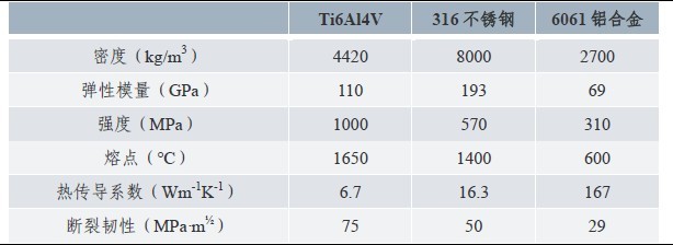 圖表3:鈦合金、不銹鋼和鋁合金的性能對(duì)比