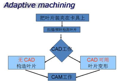 把再制造融入智能化元素,整個(gè)的制造過程需要包括對(duì)經(jīng)過激光熔敷焊接的葉片,在特制的具備在機(jī)檢測(cè)(Delcam OMV)功能的設(shè)備上進(jìn)行數(shù)據(jù)采集,然后根據(jù)采集的數(shù)據(jù)進(jìn)行造型,獲得當(dāng)前真實(shí)零件的CAD模型,然后和理論CAD模型進(jìn)行比對(duì),在保證安裝榫頭一致的情況下,需要對(duì)葉身進(jìn)行自適應(yīng)匹配,讓理論CAD模型按照相應(yīng)的檢測(cè)規(guī)則自適應(yīng)匹配到當(dāng)前零件形狀,然后自動(dòng)編程系統(tǒng)開始工作,生成數(shù)控加工設(shè)備加工代碼,驅(qū)動(dòng)數(shù)控機(jī)床完成葉片加工;加工完成后,設(shè)備啟動(dòng)在機(jī)檢測(cè)系統(tǒng),對(duì)修復(fù)結(jié)果進(jìn)行驗(yàn)證,完成一個(gè)工作。