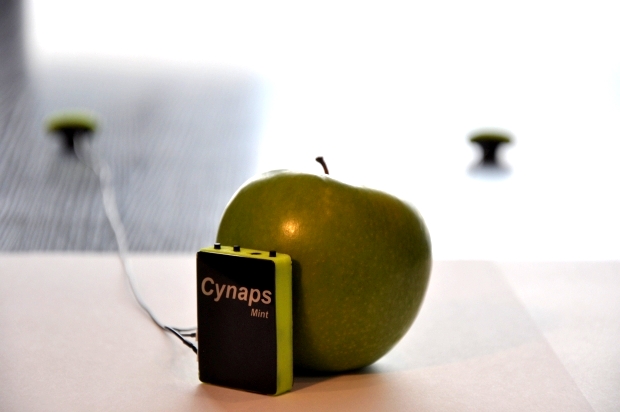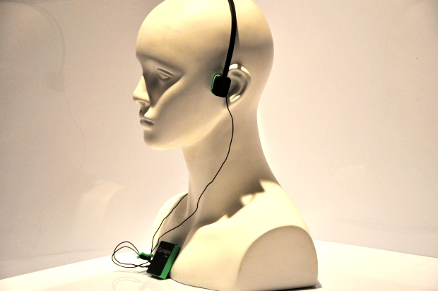 一個叫做Max Virtual的公司(該網(wǎng)站只是一個預覽頁面)已經(jīng)使用這種傳導技術(shù),把它變成一個非常有趣的耳機,但Cynaps Mint又不像尋常的耳機,實際上你并不需要把它帶在耳朵上,如果你喜歡的話也可以把它帶在腦袋后面。正如他們集資頁面上鼓勵式的說法:為你而造。這種耳機,或者稱作“傳感器”更為合適,它通過震動產(chǎn)生聲音,你可以用不同的方式不同的風格來戴在頭上?;蛘吣阋部梢园阉旁谧烂嫔匣蛘卟A蟻聿シ乓魳罚?ldquo;我們的傳感器非常強大,它可以講音樂填滿你的房間,也可以使音樂變化出別樣的風格,一切取決你使用什么樣的表面來傳遞音樂。”