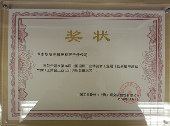 2014年11月,湖南華曙高科技術(shù)有限公司在第16屆中國國際工業(yè)博覽會工業(yè)設(shè)計創(chuàng)新展中榮獲“2014工博會工業(yè)設(shè)計創(chuàng)新獎組織獎”,工博會是目前中國最具影響力的國際工業(yè)展...