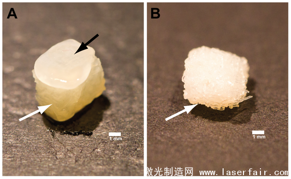 研究人員將其稱為“3D打印殼聚糖支架(D printed chitosan scaffolds)”。此外研究人員說,他們已經表明,將在干細胞植入設備后,經過四個星期的生長即可形成形成軟骨。具有珍珠光澤的軟骨樣基質會滲入“殼聚糖支架”的頂層,在該支架的上方形成一個“上蓋”。