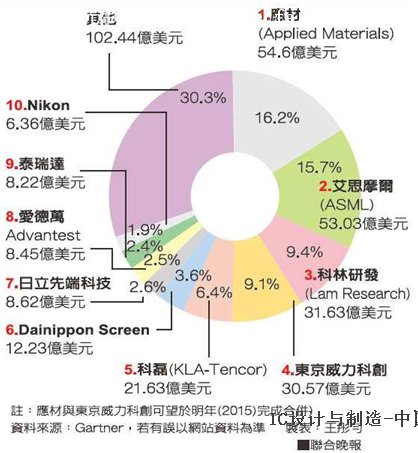 2013全球前十大半導(dǎo)體制造設(shè)備廠市占排名