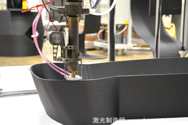 BAAM——是由著名機(jī)床制造公司辛辛那提公司和ORNL共同開發(fā)的,世界第一輛全3D打印汽車“Strati”就是由其打印的。差不多一年前,ONRL和Local Motors簽訂一項(xiàng)協(xié)議共同開發(fā)可以3D打印汽車的技術(shù)。通過將最新的材料科學(xué)成果和前沿的先進(jìn)制造技術(shù)相結(jié)合,BAAM在去年9月份在芝加哥舉辦的2014國(guó)際制造技術(shù)展覽會(huì)上僅花44個(gè)小時(shí)就現(xiàn)場(chǎng)打印出了一輛Strati。