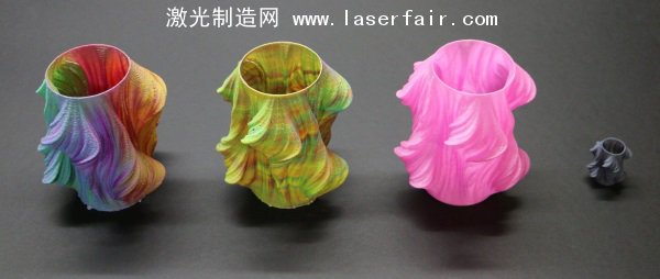 Something3D公司的這款Chameleon 3D打印機主要使用青色、品紅色、黃色、黑色和白色(CMYBWTM)的線材,然后根據(jù)用戶的需要通過以上5種顏色的組合,形成任意的色彩。