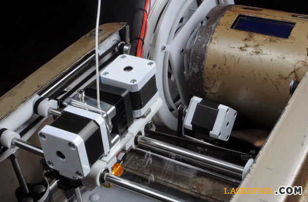 當(dāng)這臺(tái)3D打印機(jī)最終被組裝出來,展現(xiàn)在人們的眼前時(shí)(見下圖),真的給人一種時(shí)空錯(cuò)亂的感覺:半個(gè)世紀(jì)以前銹跡斑斑的鋼鐵鑄件上安裝著最新科技的產(chǎn)品,與其說它是一臺(tái)3D打印機(jī),倒不如說它是一件后現(xiàn)代的藝術(shù)品。