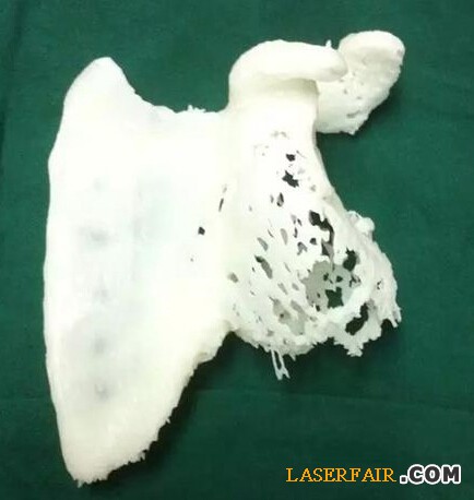 隨著3D技術(shù)的日臻成熟,該醫(yī)院與3D打印公司展開治療研究,針對李女士的治療首次采用3D打印技術(shù)制備出與患者肩胛骨完全一致的鈦合金假體,并成功植入骨腫瘤患者體內(nèi)。
