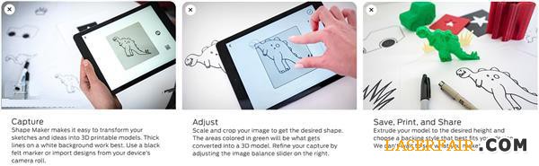 用戶(hù)可以在任何媒介上作畫(huà),然后點(diǎn)擊一下即可將其轉(zhuǎn)化為3D模型。事實(shí)上,用戶(hù)還可以把拍照或下載的照片,以及簡(jiǎn)單的iPad截圖,在數(shù)秒內(nèi)轉(zhuǎn)化成可3D打印的模型。