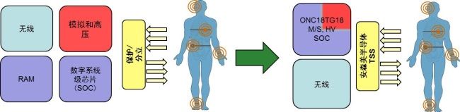 以植入式神經(jīng)刺激平臺(tái)為例,安森美半導(dǎo)體提供集成控制器、存儲(chǔ)器、數(shù)字、模擬和高壓的單芯片方案,使用多通道浪涌抑制器(TSS)進(jìn)一步顯著減少分立元件數(shù)(通常將IC裸片數(shù)從3-4顆減少至1-2顆),有助于減小電路板所占空間,簡(jiǎn)化設(shè)備制造和物流,降低成本和功耗,減少對(duì)系統(tǒng)/電路板的依賴(lài),提升品質(zhì),加快產(chǎn)品上市時(shí)間,降低開(kāi)發(fā)風(fēng)險(xiǎn)。