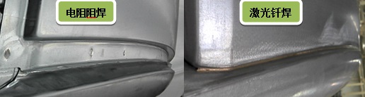 圖1 頂蓋激光釬焊與電阻點(diǎn)焊的比較
