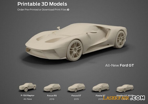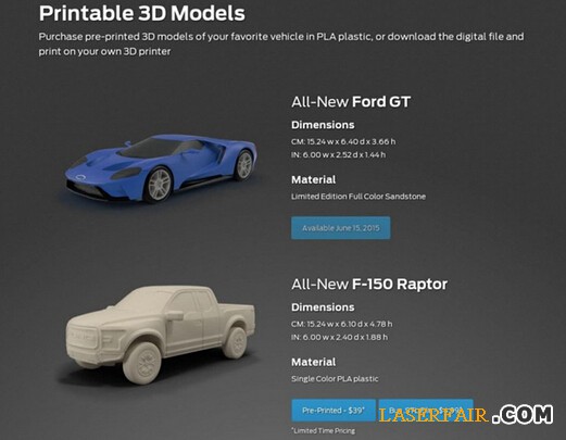 2015年6月11日,福特公司宣布,他們成為全球首家開(kāi)設(shè)在線可3D打印汽車模型商店的汽車制造商。正好趕在父親節(jié)前,專營(yíng)各式可3D打